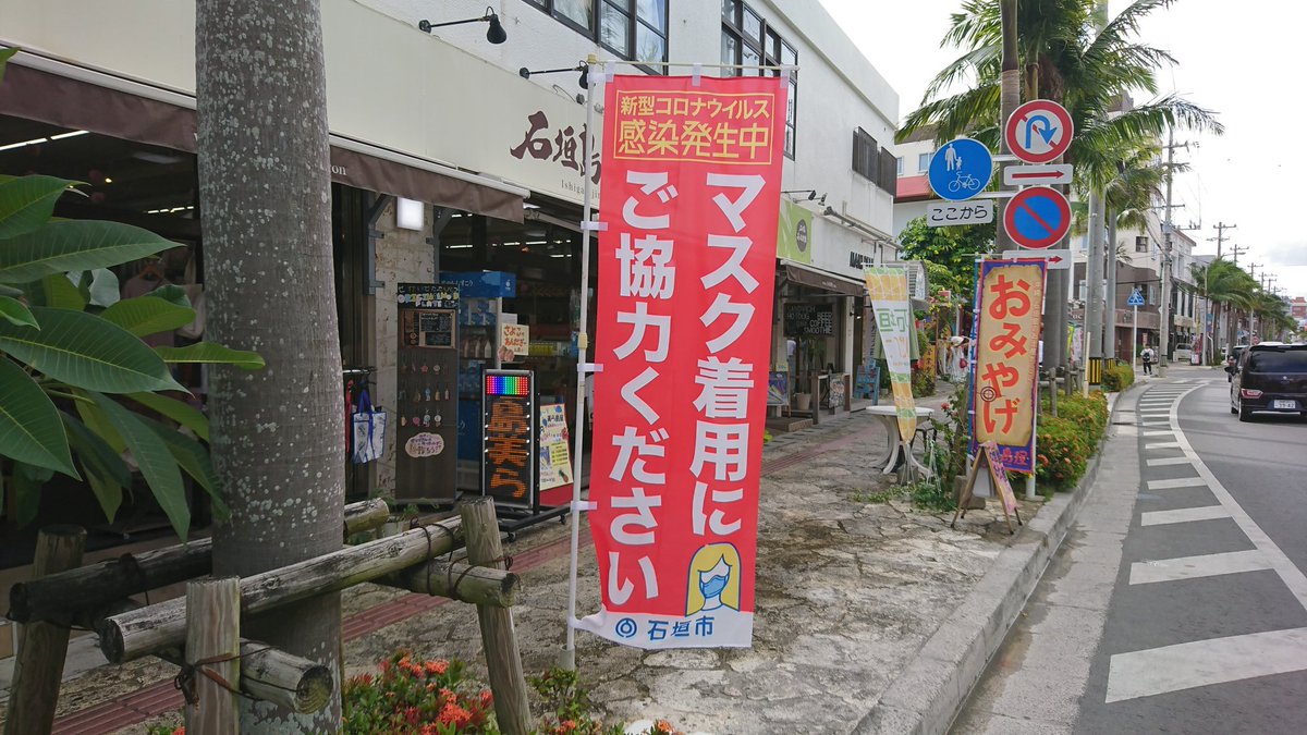 「石垣アラート(赤)」発令中。南の島に来た解放感からか街なかでマスクをしていない観光客の方が見受けられます。石垣島は今、新型コロナウイルス感染者が発生しています。みんなの健康と命、日常を守るため市民、観光客の皆様にマスクの着用をお願い致します。 #石垣島とあなたを守る新しい旅のカタチ