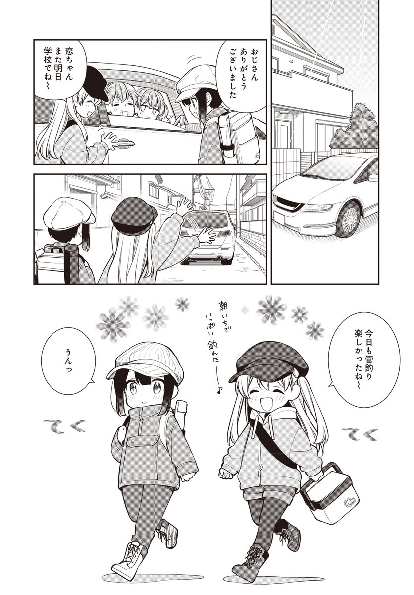 いつものように恋父に連れられ管釣りを満喫した一行。