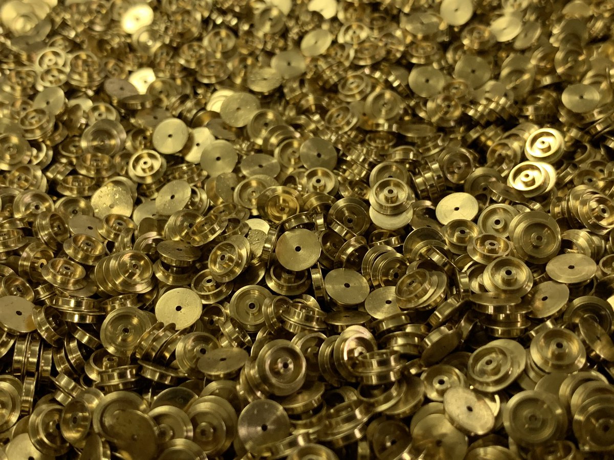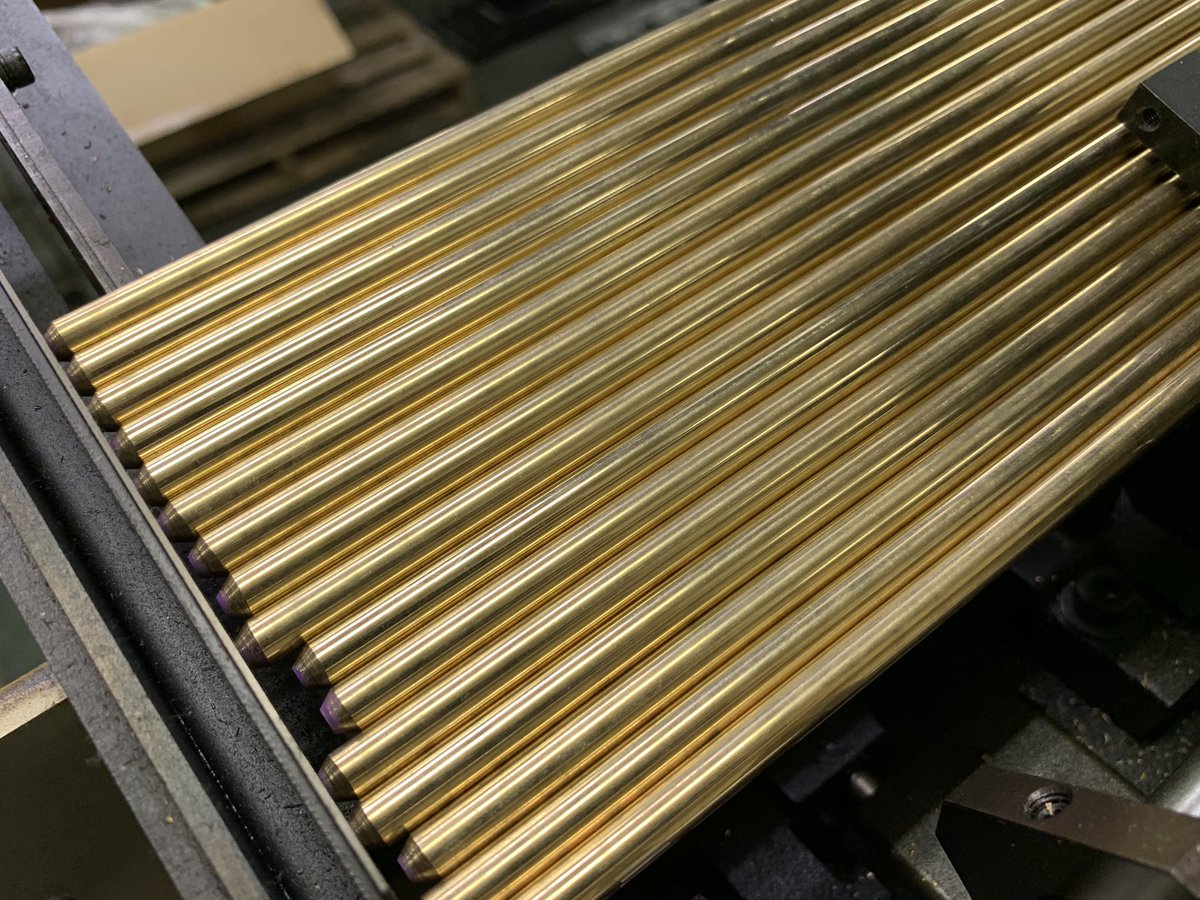 正解は、車輪の原材料です!驚かれる方が多いのですが、KATOでは車輪や集電板などの金属部品も自社工場で切削・プレス加工等の製造をしています。1本はおよそ3メートルで、1本の材料からおよそ1,000個の車輪が作れるそうです。