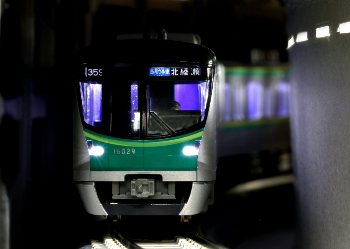 千代田線16000系「5次車」は27日(月)出荷です!帯色の変化が特徴的ですが、ライト部や屋根上など、2次車との細かい違いを的確に再現しました。行先表示も「北綾瀬」など現在の運用を収録しています。写真は千代田線内をイメージして撮ってみました♪