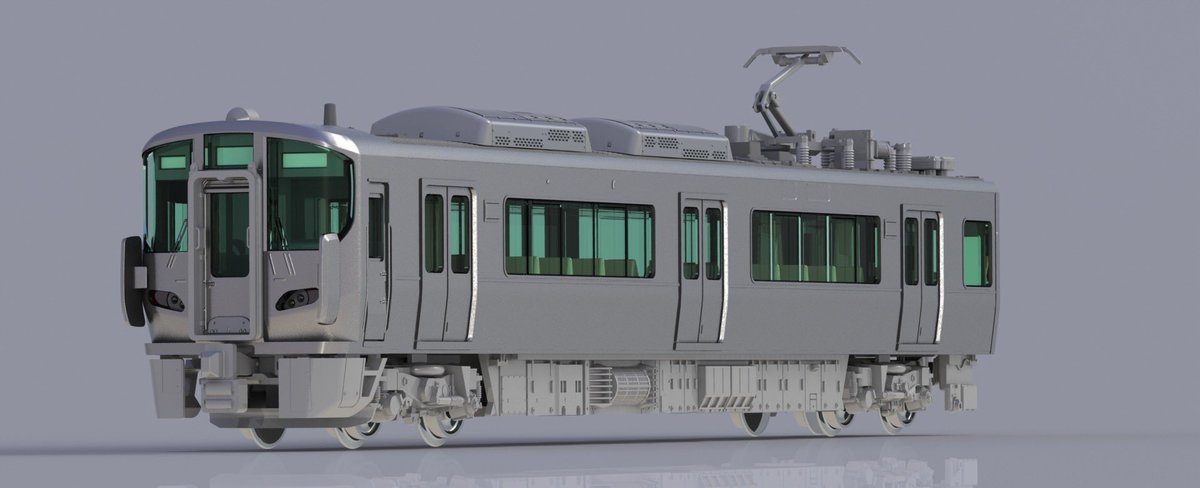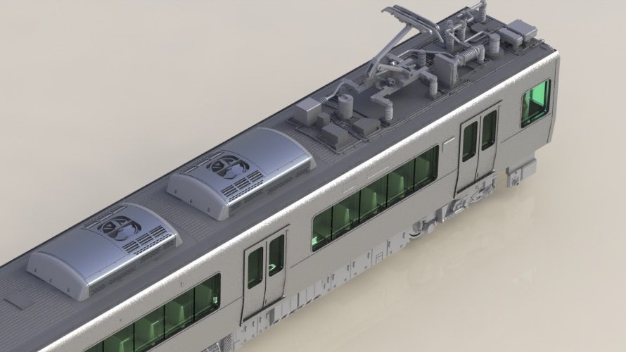 521系3次車は、近年JR西日本の通勤・近郊形車両の標準デザインとなった前面と、屋根上の交直流機器などが特徴です。2次車との併結や、かつて同じ時代に北陸を駆け抜けた681系スノーラビットとの共演もお楽しみください。3D画像も早速出来上がりました!