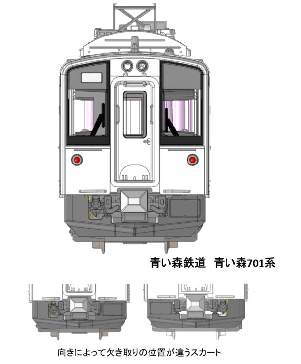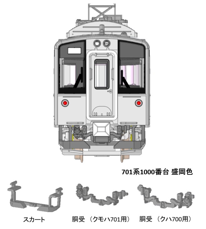 9月発売予定「701系1000番台 盛岡色」「青い森鉄道 青い森701系」につきまして、スカート形状と部品構成を変更いたします!スカートは形状の見直しを行い、より実車に近い外観イメージを再現♪詳細につきましては3D画像と、下記PDF書面も合わせてご覧ください。