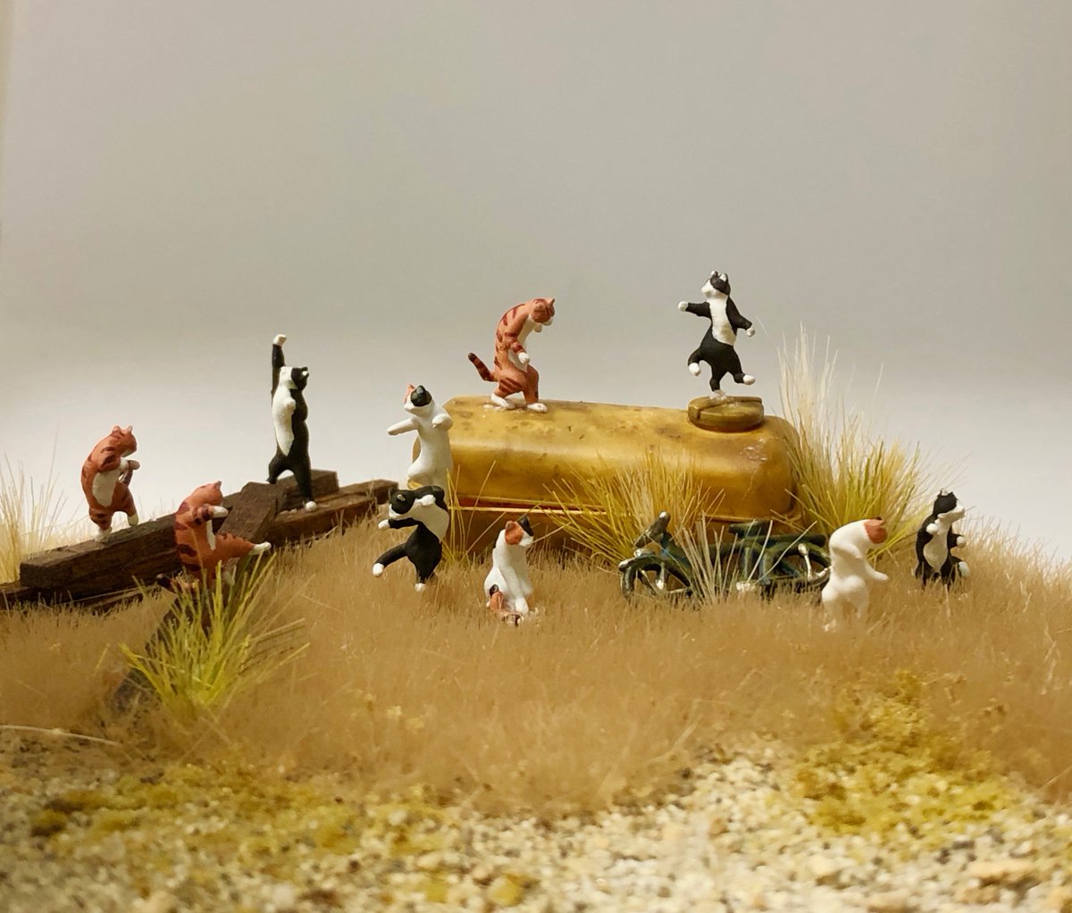 九州在住の写真家・久方広之さん(@sakata_77)による大人気猫写真集『のら猫拳』の猫たちが1/87のフィギュアになって登場!身体能力を活かしたジャンプやキックなど、まるで戦ったり踊ったりしているような10種類の躍動感あふれる姿の猫フィギュアです🐈