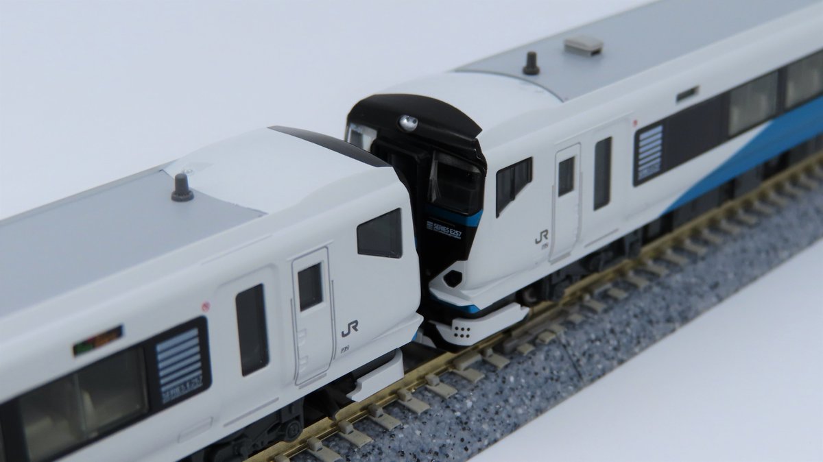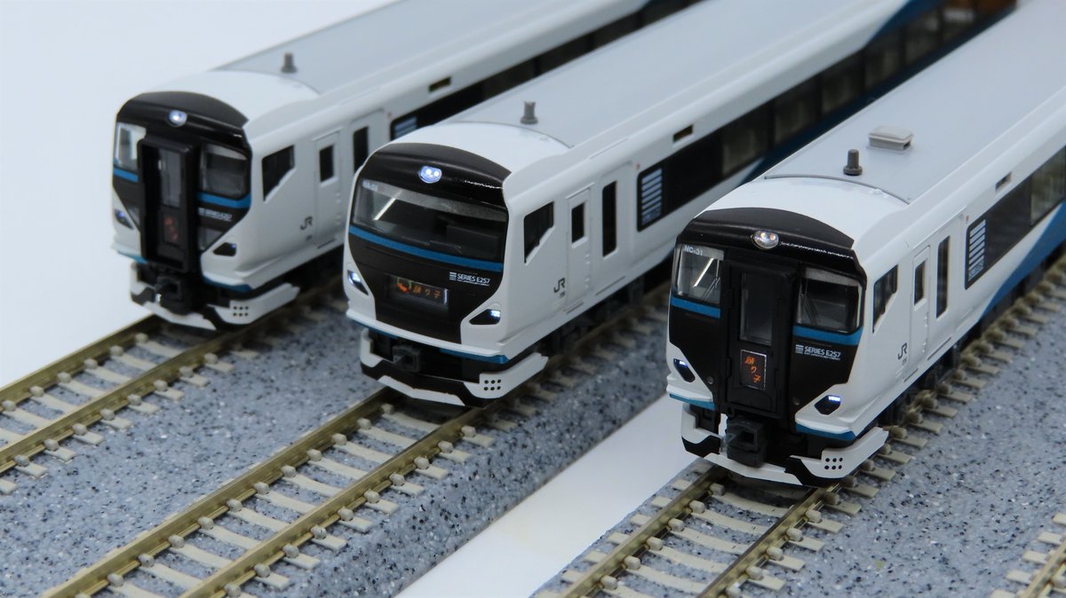 今月出荷予定のE257系2500番台「踊り子」の試作品です!ベースとなった500番台の面影を残す表情や、上部と下部で異なるヘッドライトの色味を再現。2000番台併結の長大14両編成から、修善寺方面の短い5両単独運用も楽しい特急「踊り子」です。