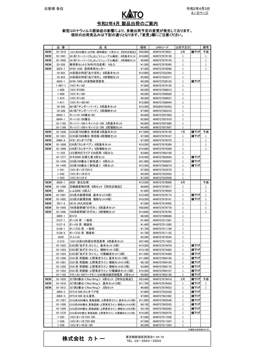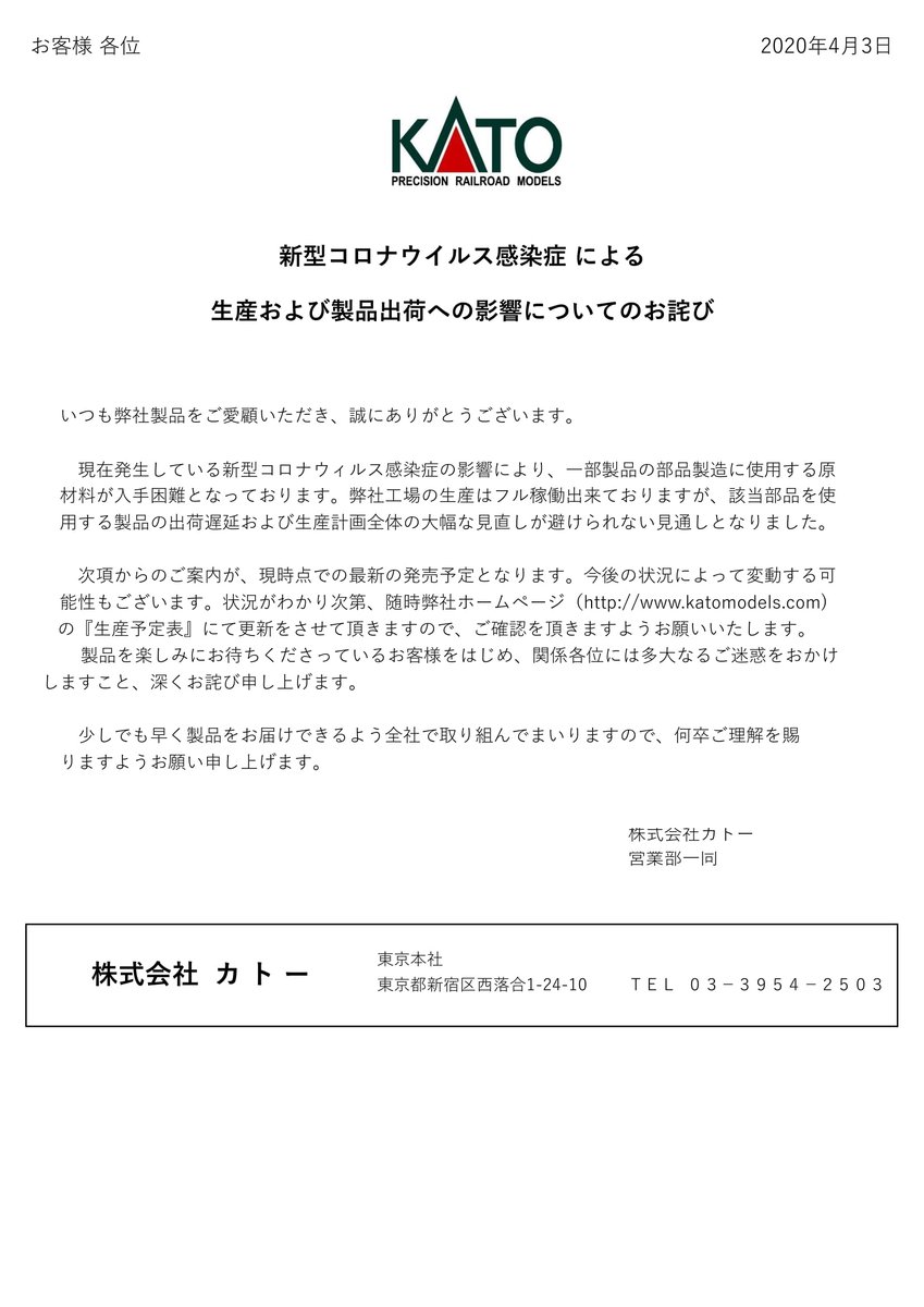 弊社は国内一貫生産を行っておりますが、新型コロナウィルス感染症の影響により一部原材料が入手困難となっております。そのため、一部製品の出荷予定を変更させていただきます。発売を楽しみにされているお客様にはご迷惑をおかけし、誠に申し訳ございません。