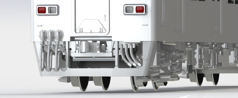 東武鉄道8000系、早速先頭車の3D画像をご覧ください!特徴的な更新車の前面スタイルを的確に再現し、表情を引き締める胴受周りの精密感にも拘りました!各セットを組み合わせ、4両から10両まで様々な編成をお楽しみください。