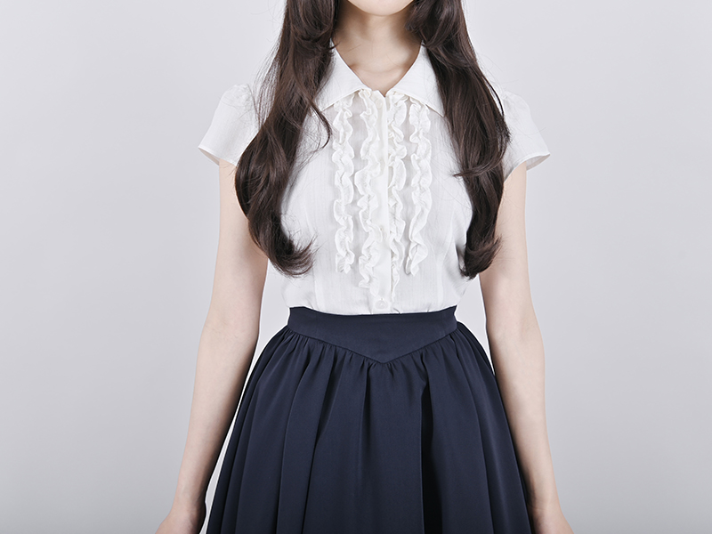 フリルが甘くなり過ぎ無いよう、大人の女性の様々なコーディネートに合わせやすい絶妙なバランス。