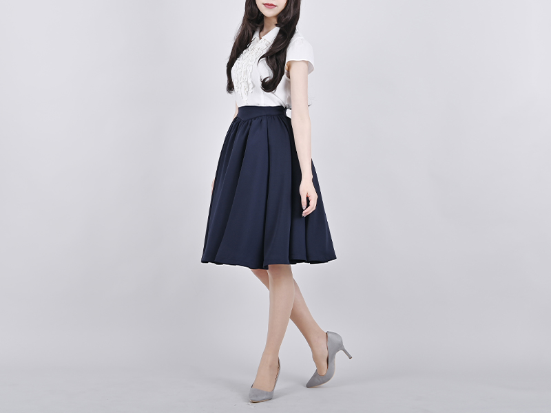 さらりとした肌触りのよい生地を、円形に広がるほど贅沢に使用したサーキュラースカート。