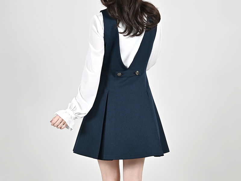 「ボックスプリーツワンピース / ネイビー」
