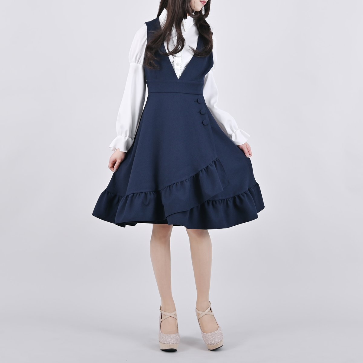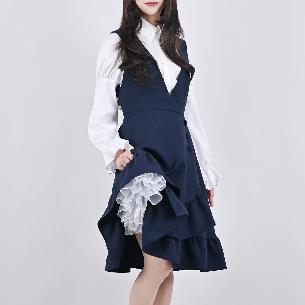 裾のフリルの幅を広めにすることで、しっとりと可憐なレディに。