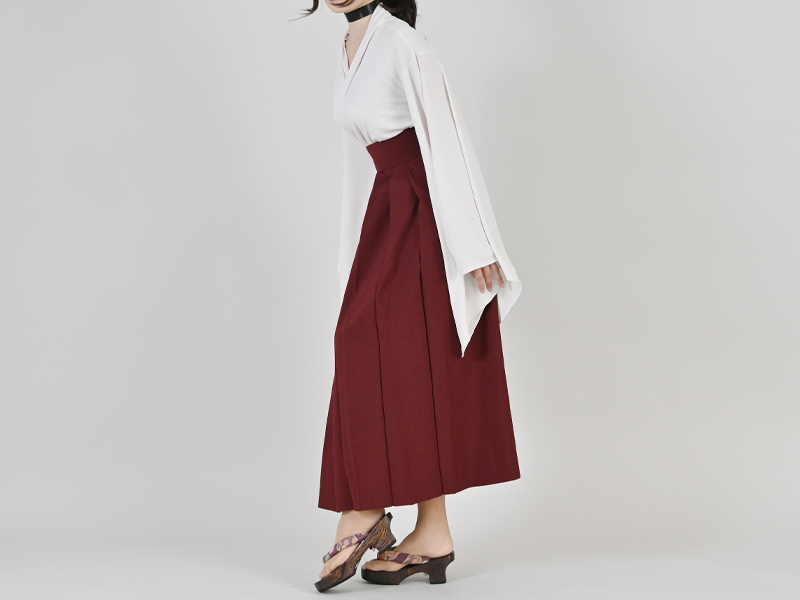 巻きスカート風になっているアシンメトリーのデザイン。