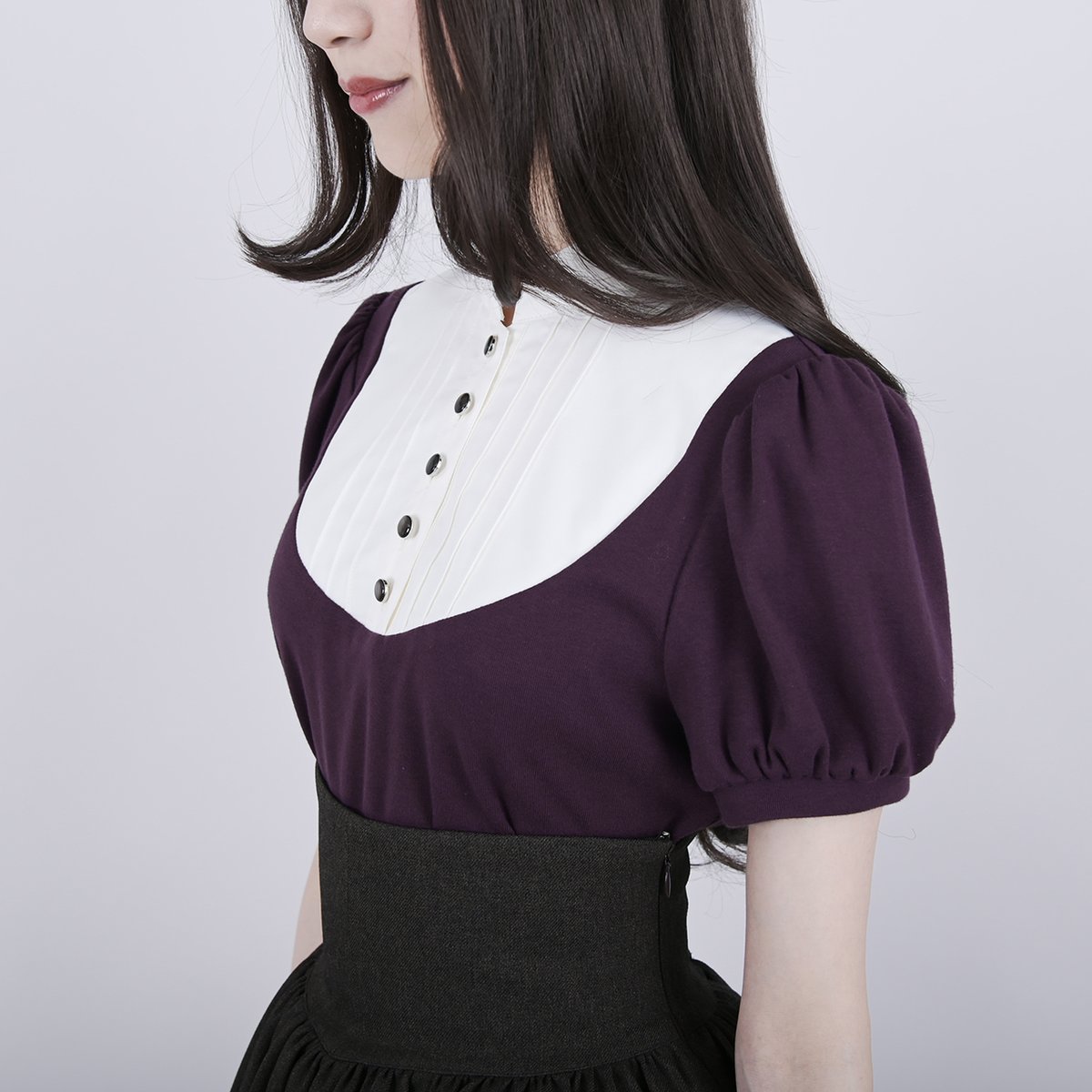 夏から秋にかけて活躍できる半袖パフスリーブのトップス。