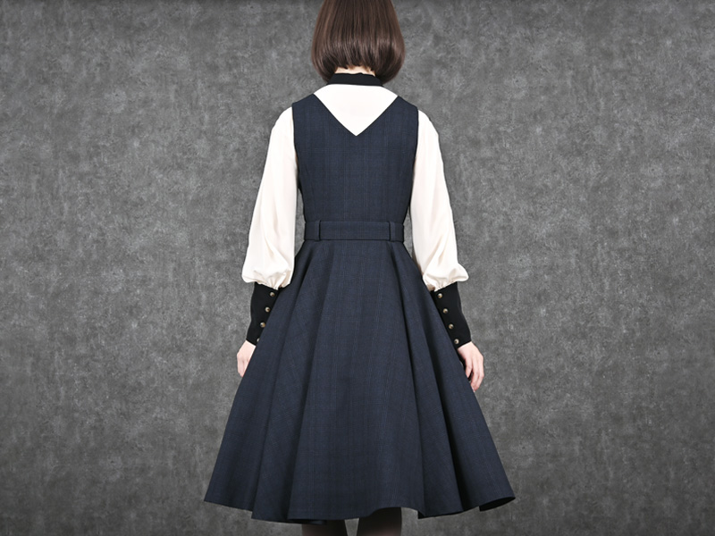 本来のエプロンの役割を超えて、ワンピースやスカートを惹き立てる脇役としても大活躍。