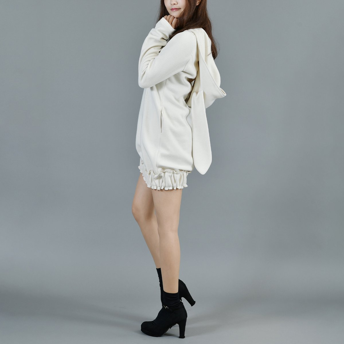 甘えない大人のためのうさ耳ニットワンピース。