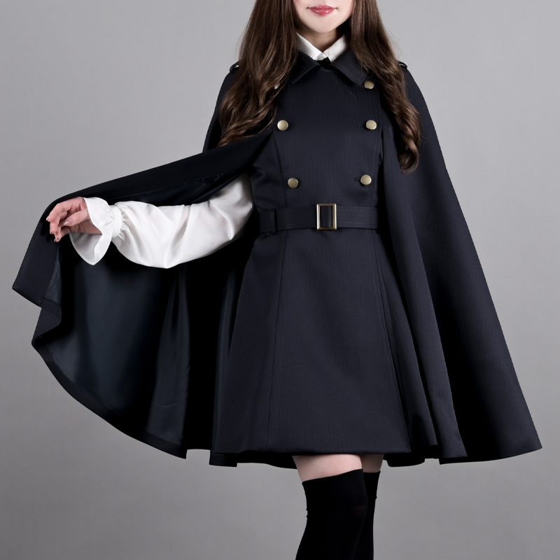 動くたびにマントの揺らめきで生まれるドレープが美しいコート。