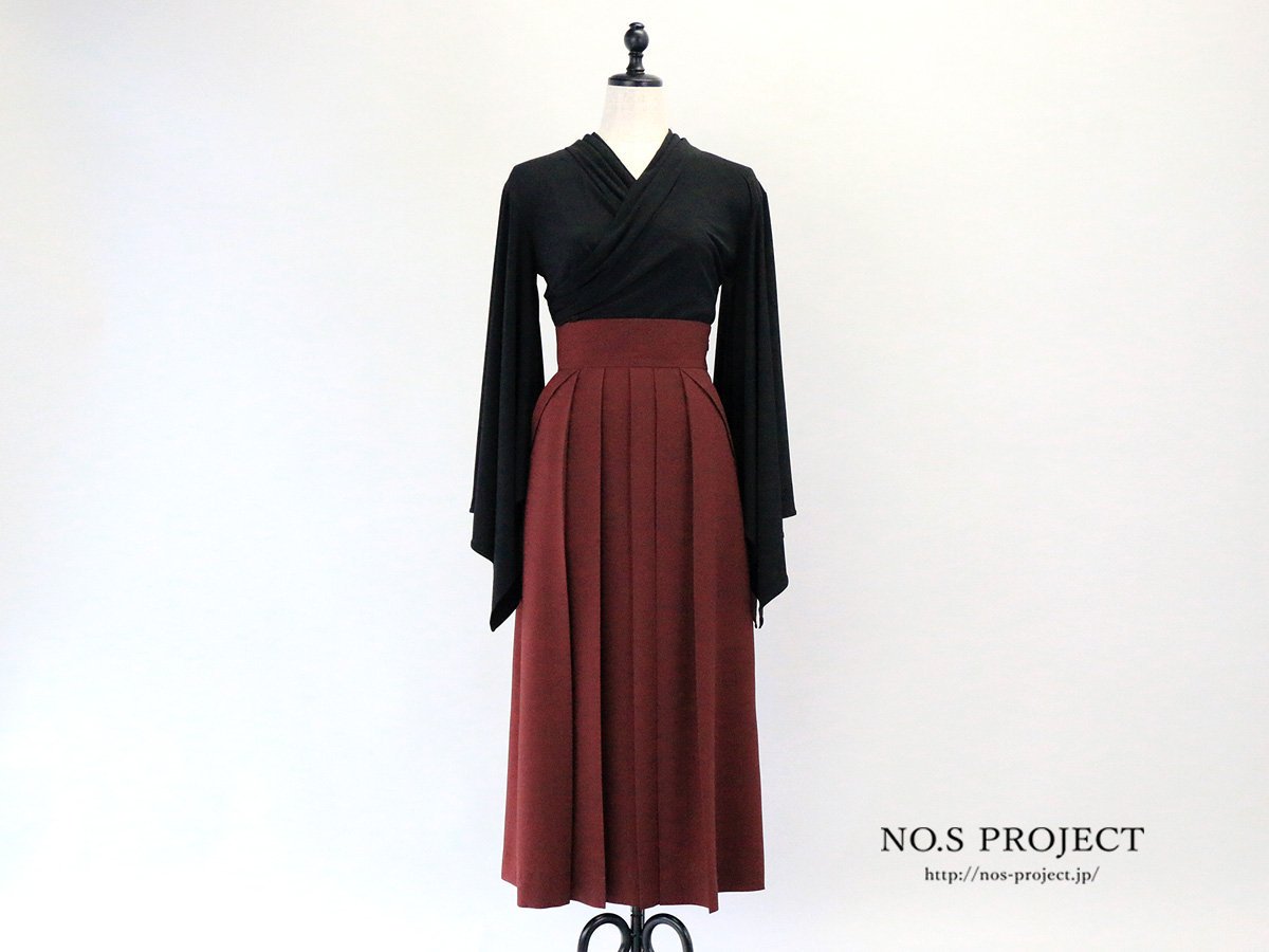 直線的な要素で構成されている和装を、曲線的で体にフィットさせる洋装としてのリアルクローズへ。和装だけでなく、洋装にも合うスカートです。ハイカラコーディネートが楽しめる人気色、ボルドーの縫製が完了致しました。