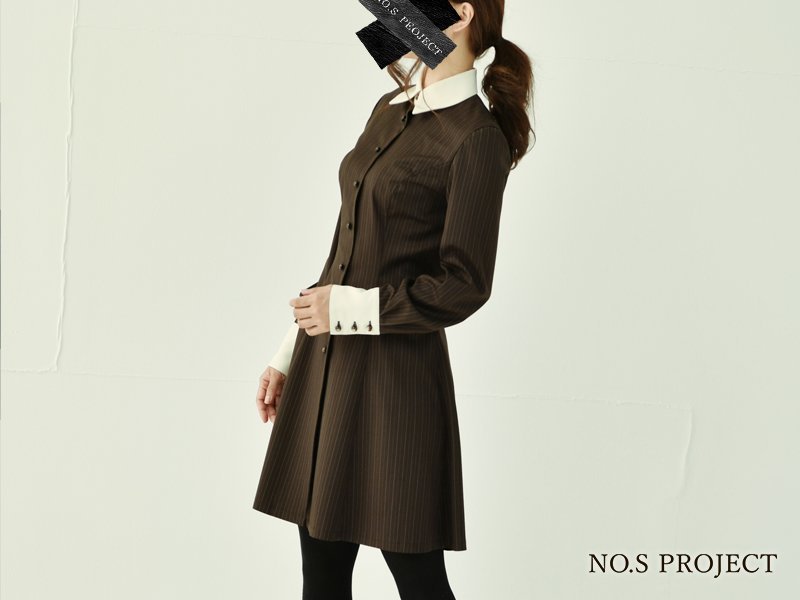 【即納品】「ストライプシャツワンピース:ブラウン」