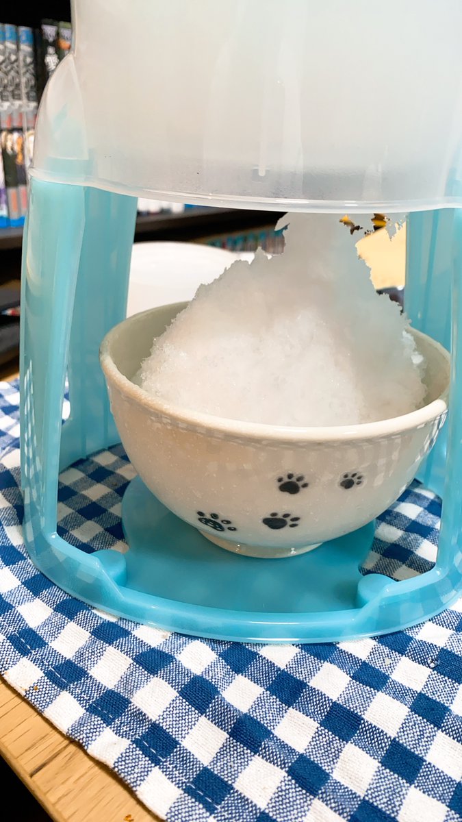#キョコロヒー で紹介されてた梅しそかき氷作ってみたけど、唯一無二の食べ物すぎてやばい。ゆかりご飯とも違う、冷たさとともに塩気がダイレクトに響いてくる狂気の食べ物。でもうまい! 氷と梅干しもマッチしてて良い! ただしゆかりを無限にかけてしまう危険性があるので注意。