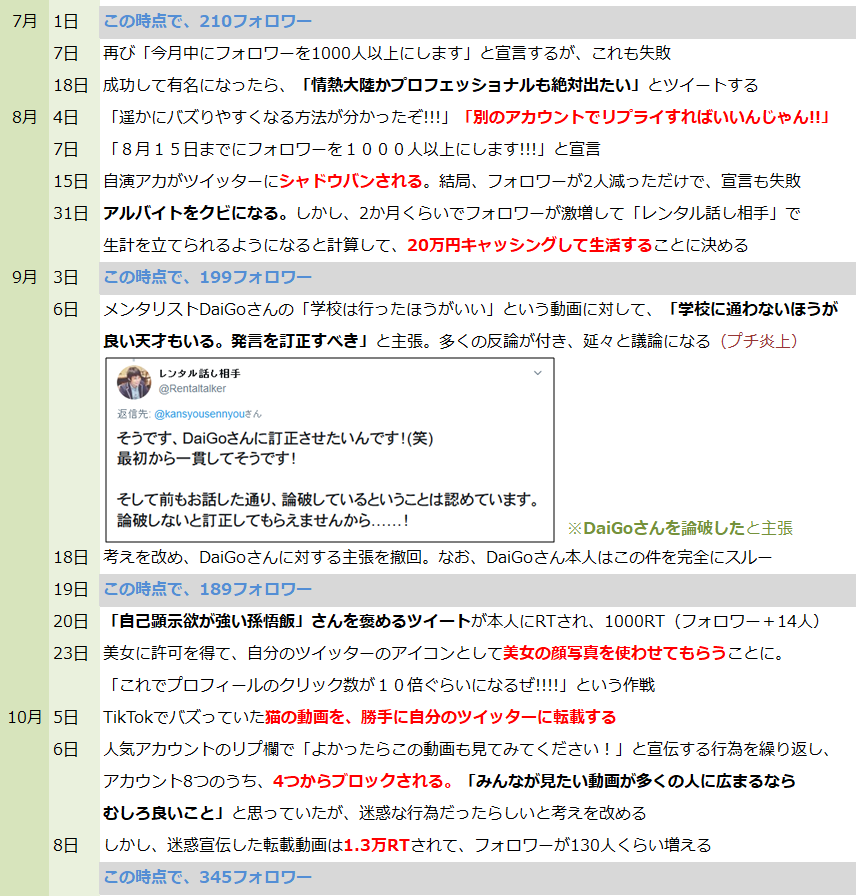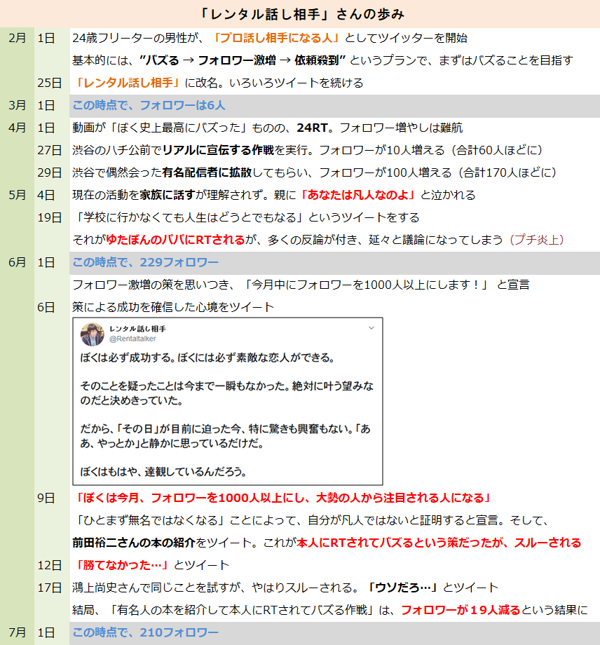 時給1万円でヒモになりますと150人の女性にDMを送って全部断られた件などは、若さと全能感が良い感じです twitter.com/Rentaltalker/s…