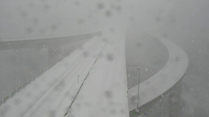 現在の #名二環 名古屋南JCT付近です。 降雪が強まってきておりますので不要不急の外出を控え、やむを得ず高速道路ご利用される際には冬用タイヤの装着とタイヤチェーンの携行をお願いします。