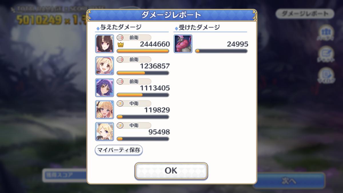 ジャバウォックで水着マホの使用感を確認しました!フルオートのダメージレポートですが、アタッカーとして十分に火力を出せるキャラといえそうです。(※マホはランク13/星3。キョウカちゃんはアイスランスクリティカル多めです)