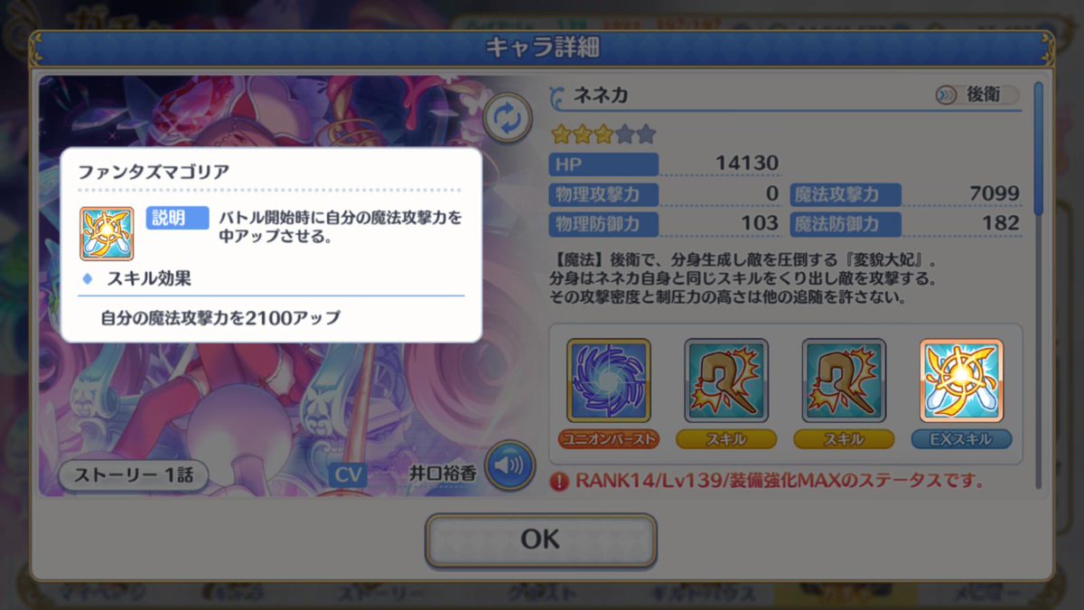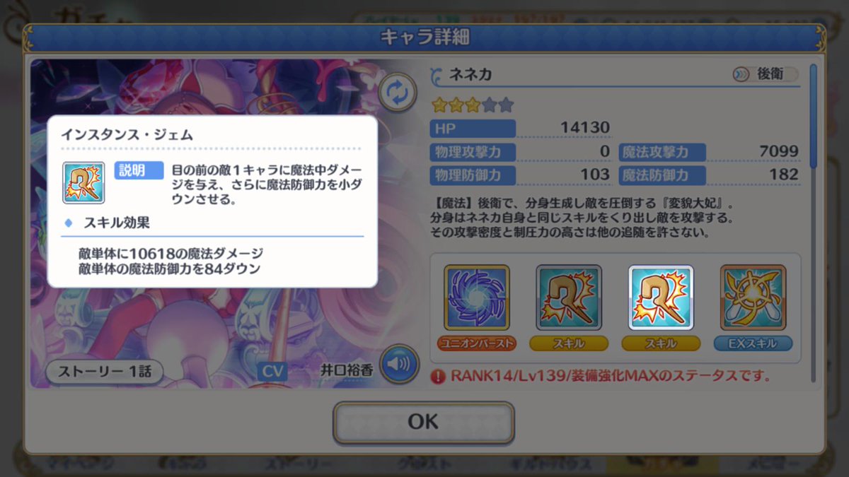 分身はネネカ本体と同じステータスを持っているようです。UBを使えない点以外は、純粋にネネカが1人増えるイメージでよさそう。