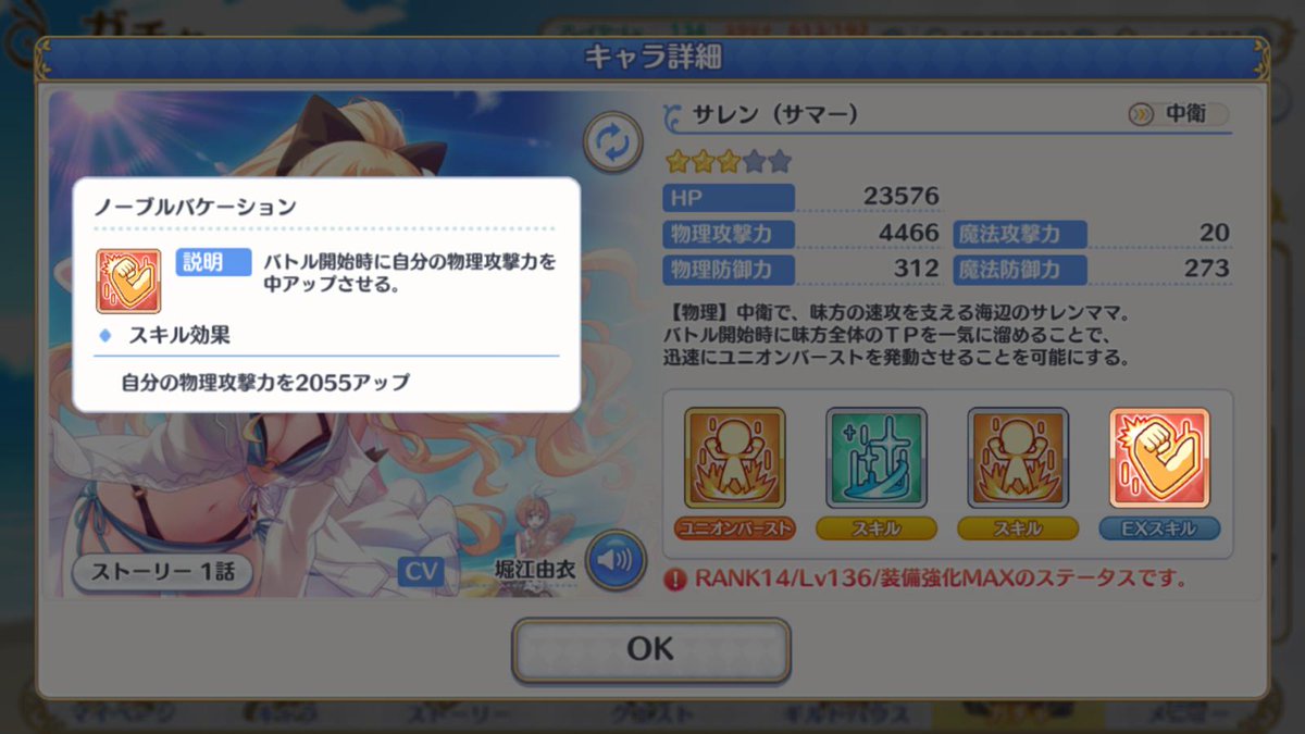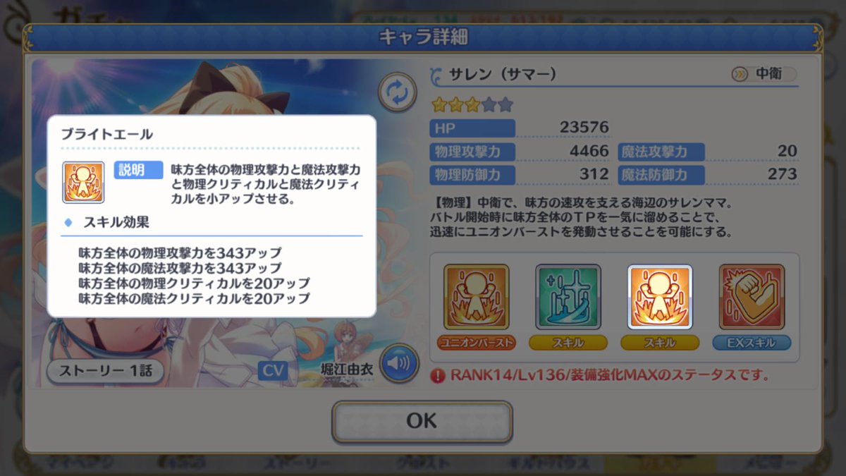 ヒールに目が行きがちですが、自己バフとダメージスキルもかなり強力ですね…(星5ナナカと競ってる)