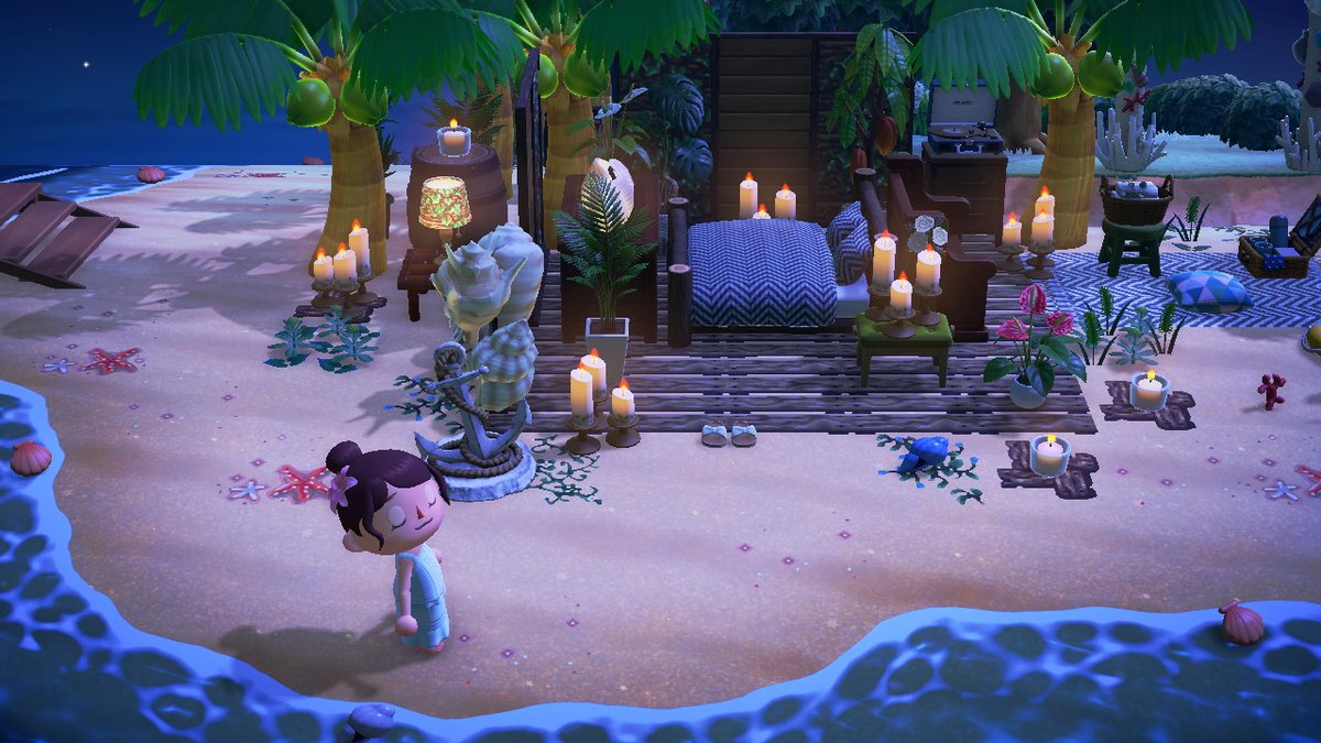 浜辺のまったりスペースとして、おひるねデッキを作りました。遊び疲れたどうぶつ達にのんびりして欲しいなぁ。シエスタ~~