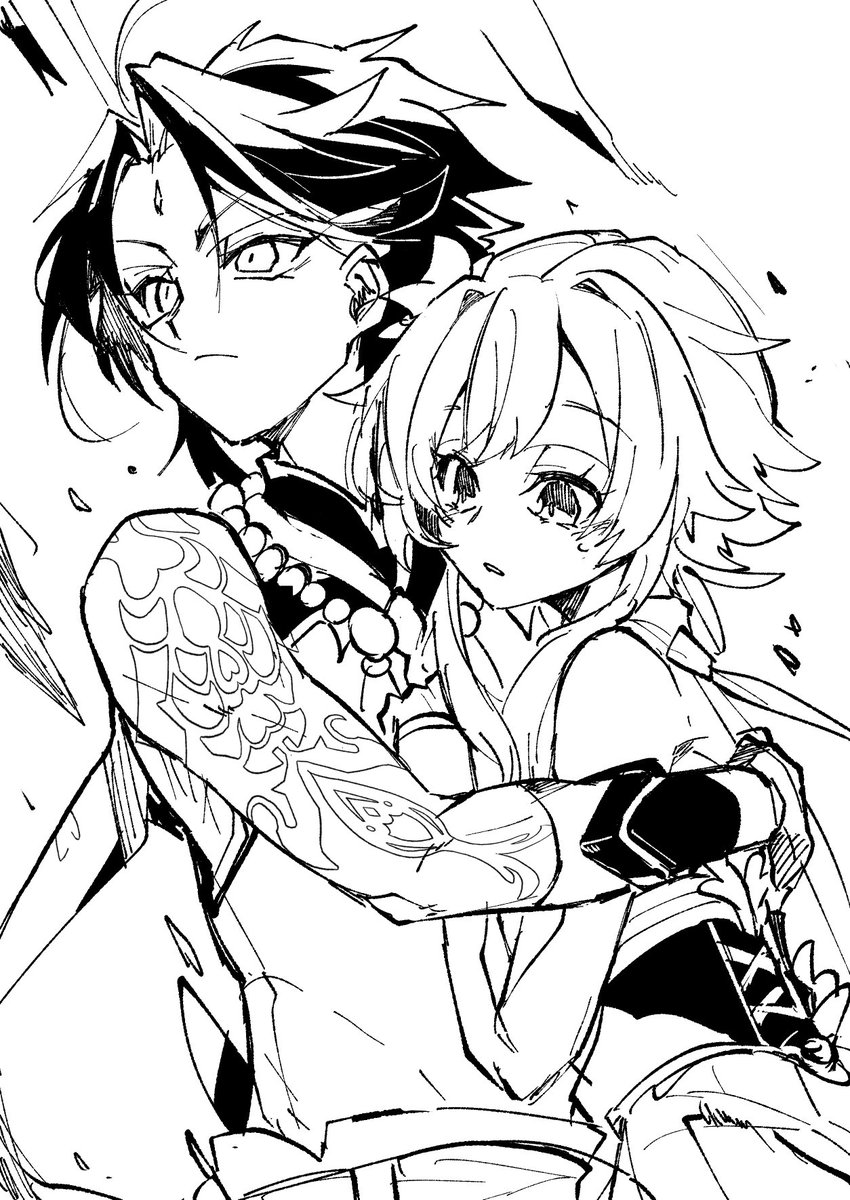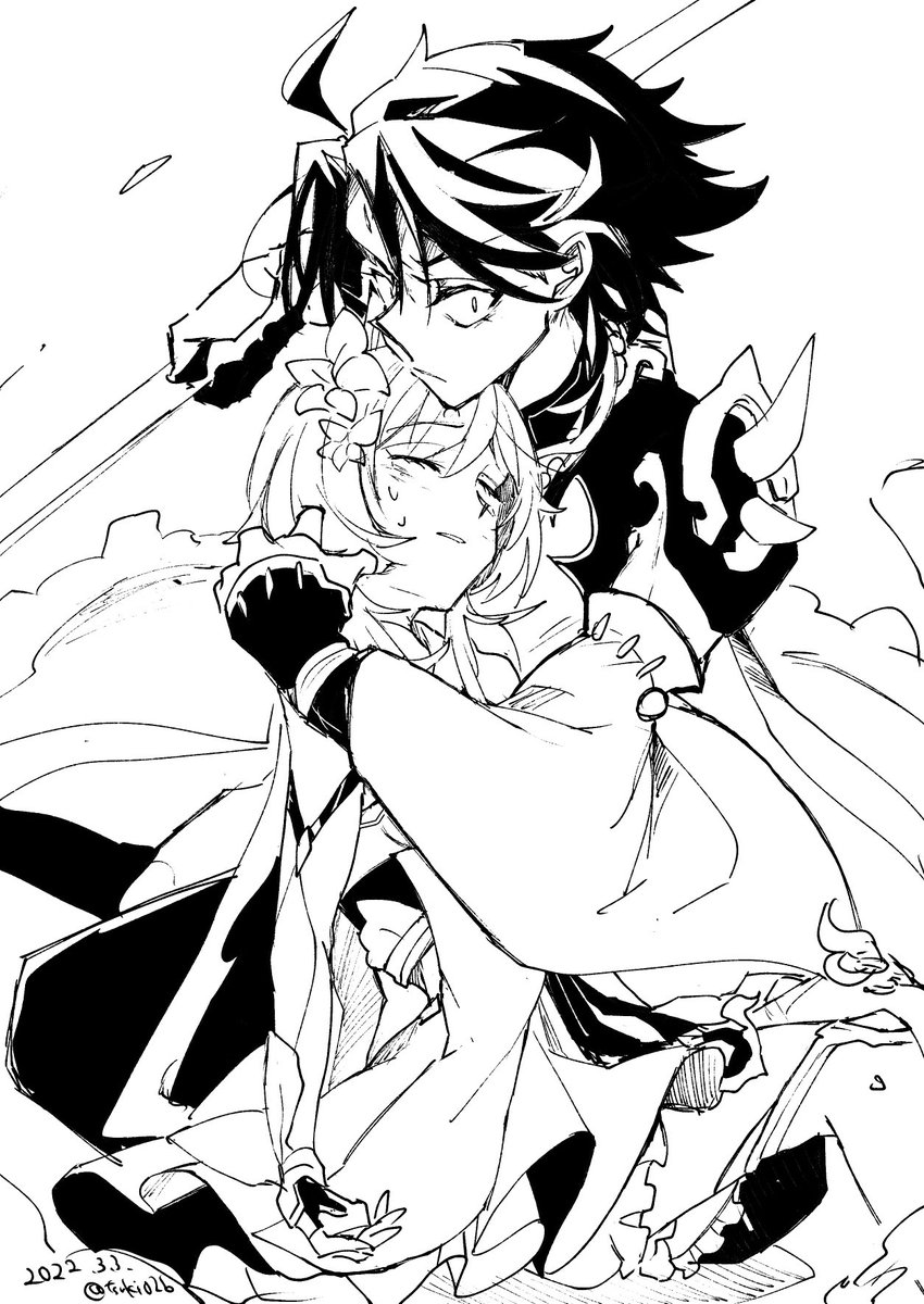 うちのねーちゃんが描いてくれた!!見て!!!!魈蛍絵!!!神!!!!😭😭🐈🐈