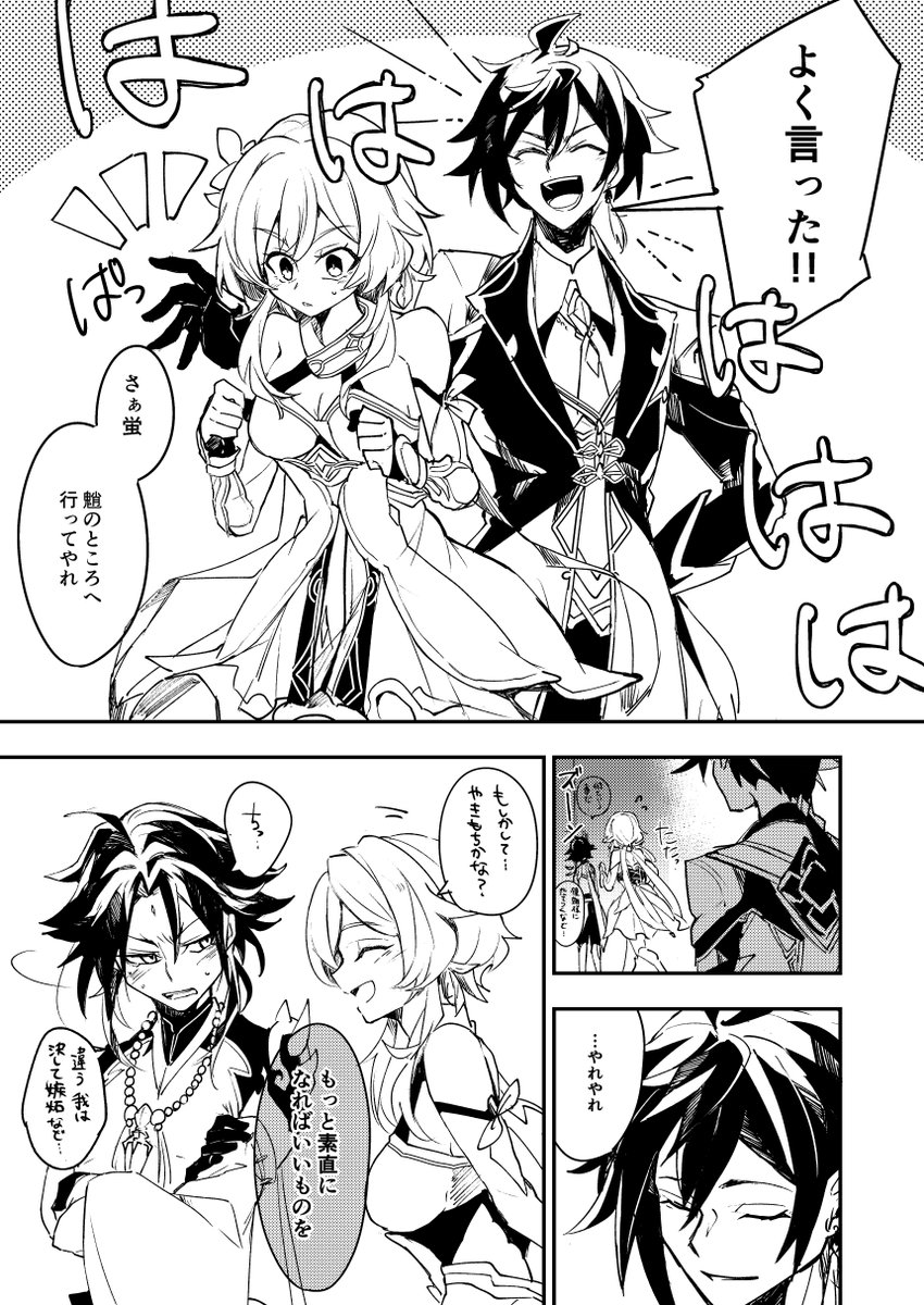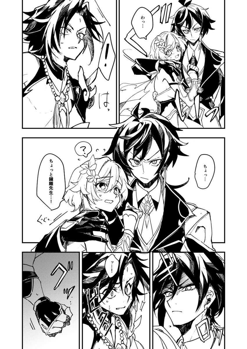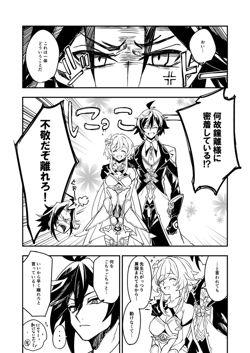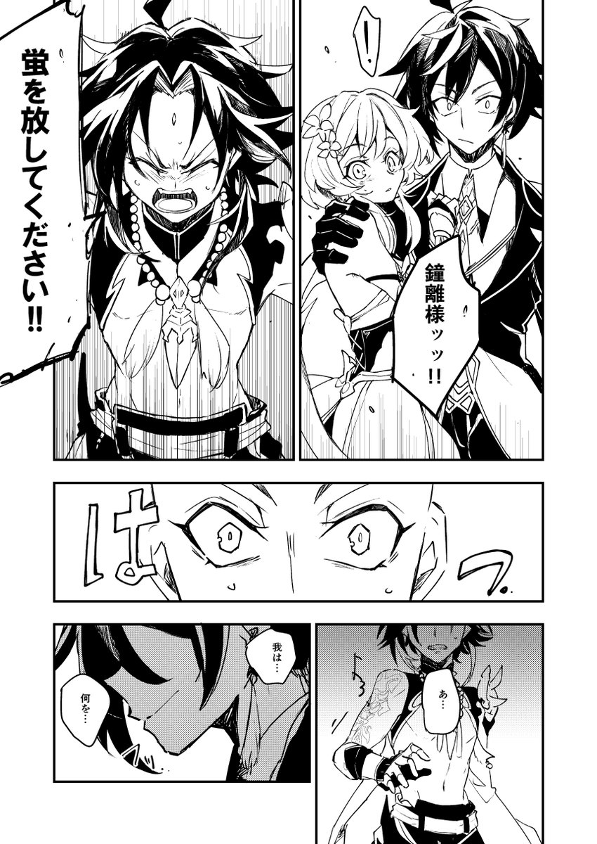 出来たので上げ!魈蛍まんが 鐘離先生がけしかけてる感じのやつです