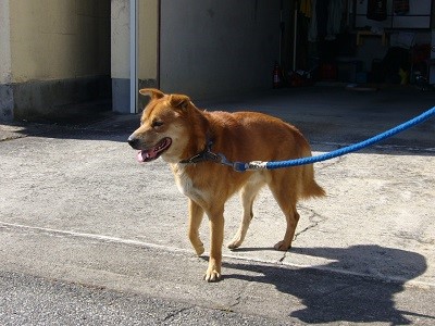 特徴:オス、雑種、茶色、首輪あり(青色)