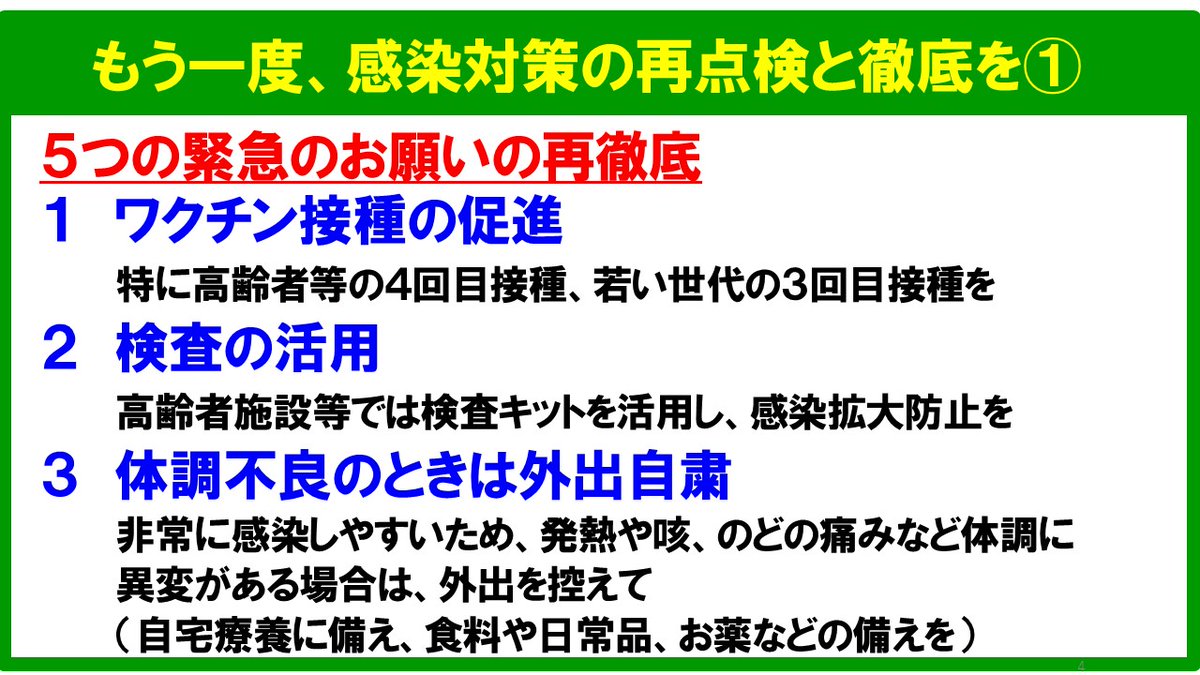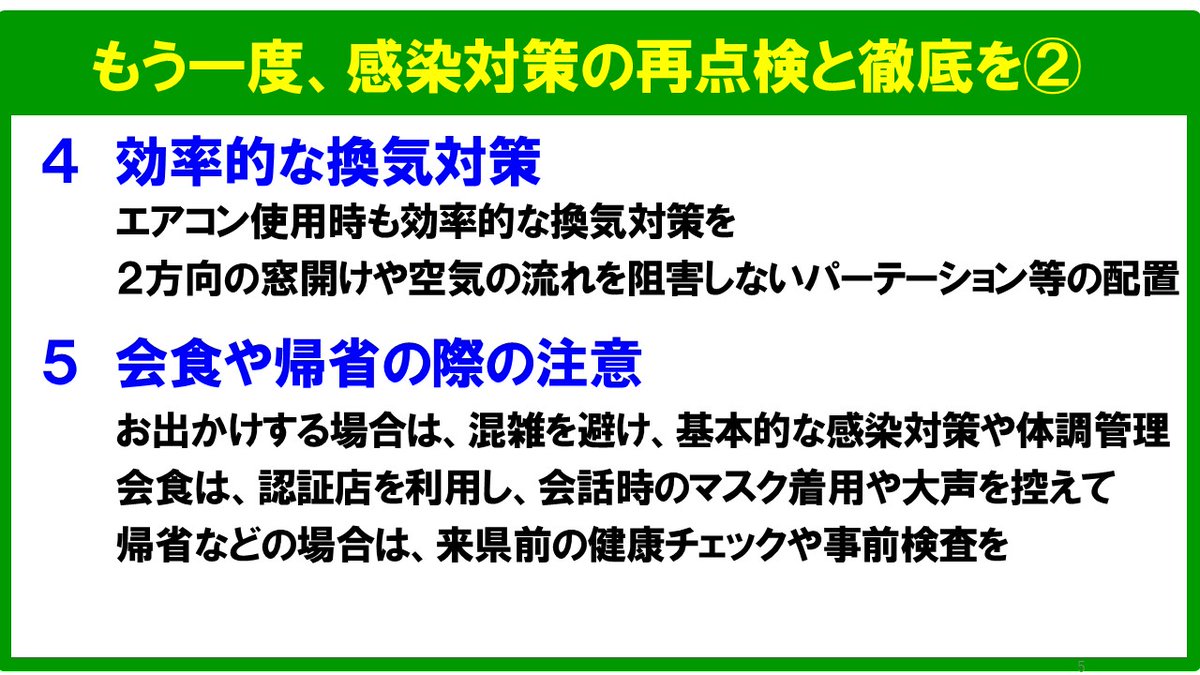 県民の皆様には、感染対策の再点検、再徹底をお願いします。