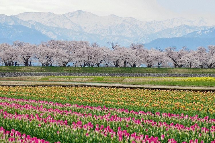 あさひ舟川「春の四重奏」が見頃を迎えています📸