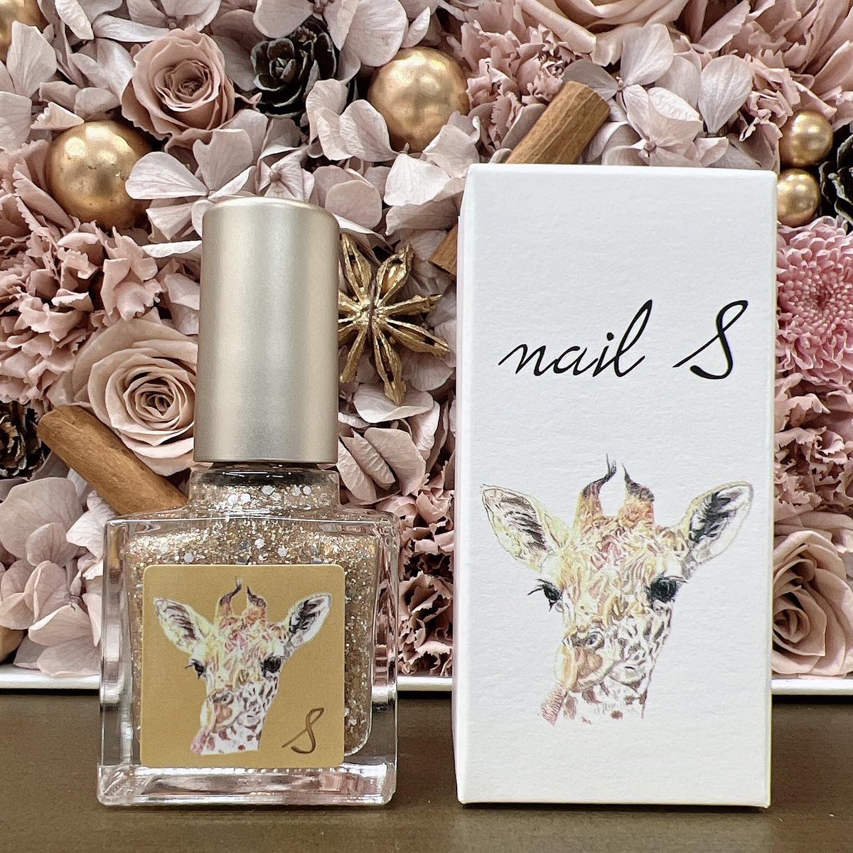 大きさの異なるゴールドとシルバーのホログラムを敷き詰めて暖色ベースのラメと合わせた華やかな宝石カラーです。