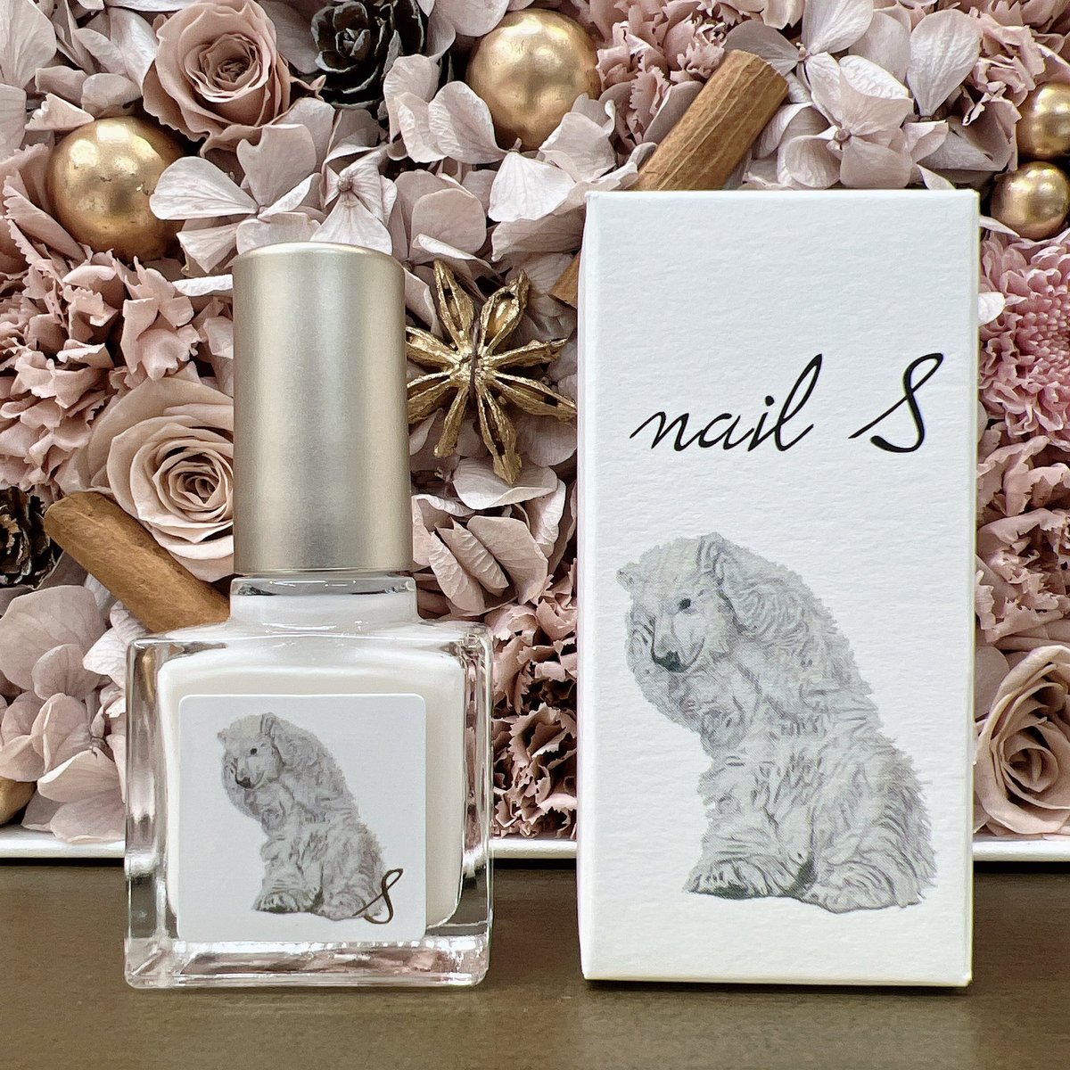 真白い雪のようなベース色に銀色のラメが繊細に輝く、ホワイトカラーです。