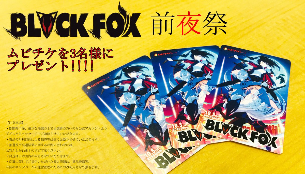 明日10/5より公開開始の劇場アニメ『BLACKFOX』ムビチケを抽選で🎊3名様🎊にプレゼント!!!!