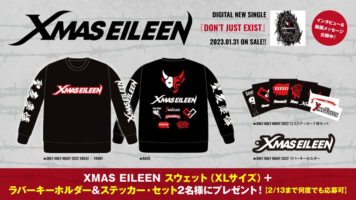 XMAS EILEENスウェット(XL)+ラバーキーホルダー&ステッカー・セット2名様にプレゼント!