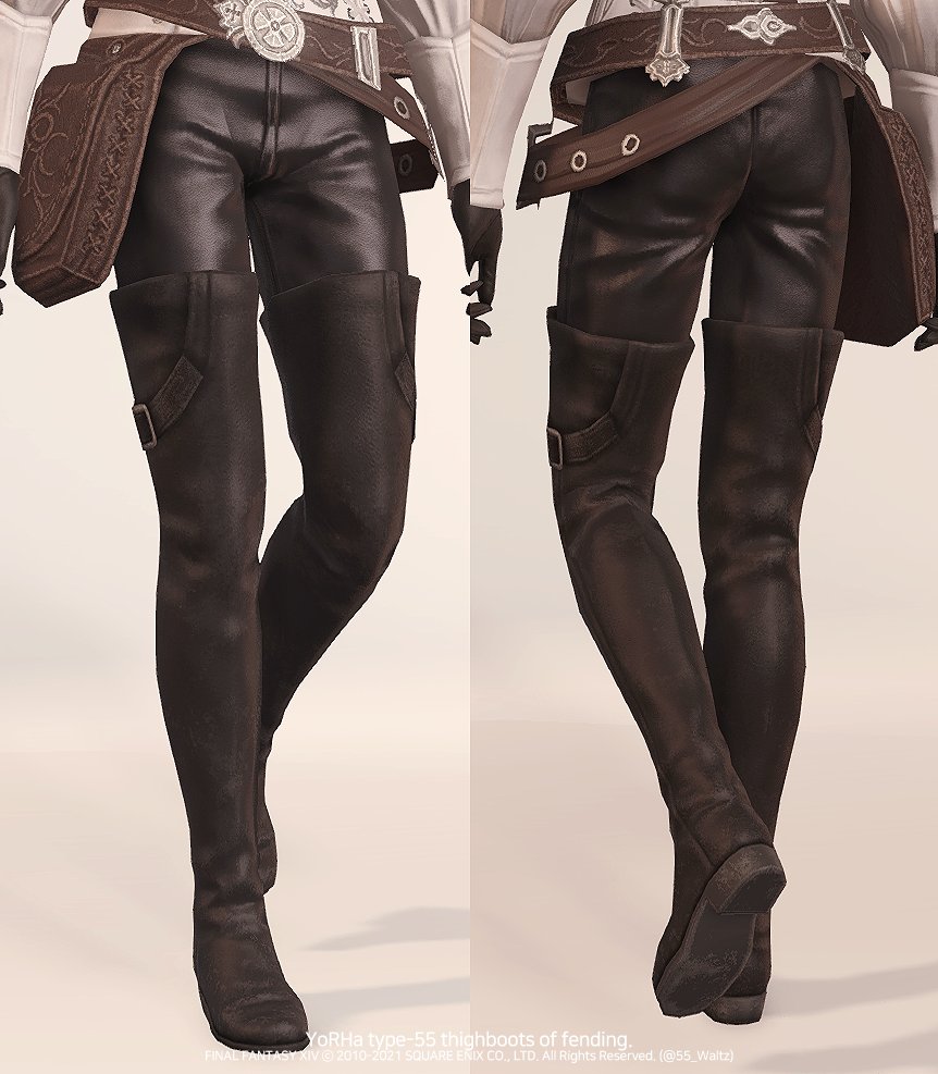 남성캐릭터 착용. 악마 부츠만큼이나 깔끔한 롱부츠입니다! 탱커-용기사 아이템 외형동일합니다. 염색가능. 성별에따라 다소 차이나지만 여캐도 전체적으로 깔끔한 롱부츠. #ff14