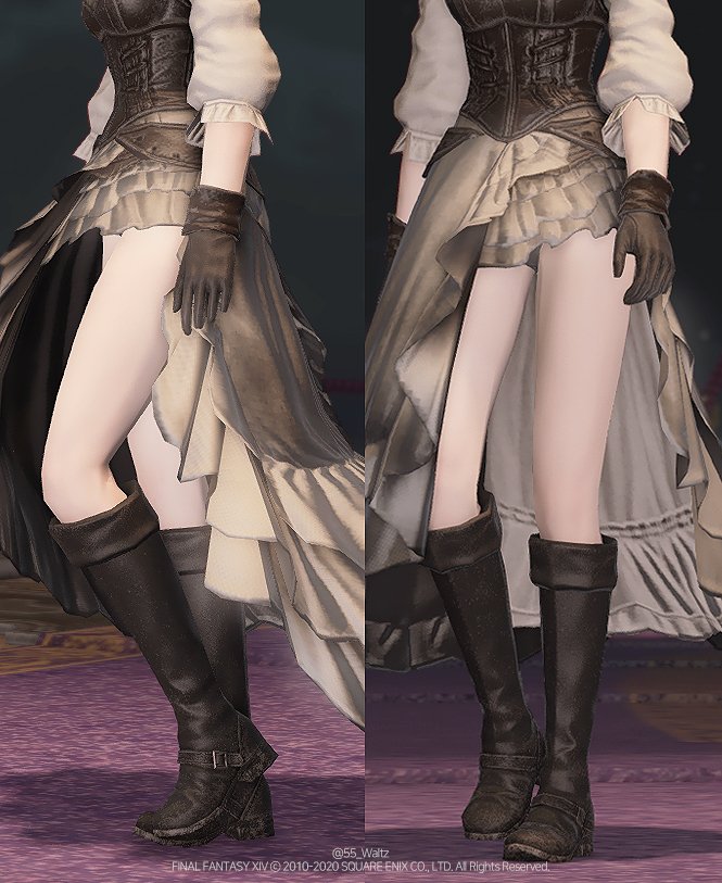 풀셋으론 긴로브에 감춰져 전혀 보이지 않았던 금속장식과 어우러진 스타킹(또는 다리장식)입니다. 염색불가. (남성캐릭터가 착용시 노출부분이 없이 타이츠로 연출됩니다) #ff14