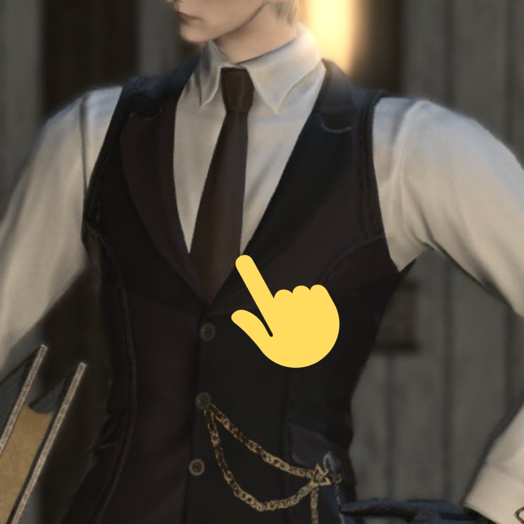 전에 한번 말했지만.. 이 옷의 변태적 부분은 넥타이와 조끼 사이 눌린 셔츠 주름이고.. 이게 너무 죠아☺️ twitter.com/55_Waltz/statu…