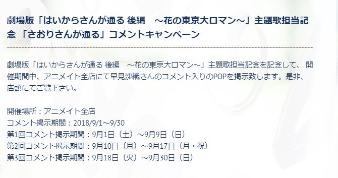 「さおりさんが通る」コメントキャンペーン」