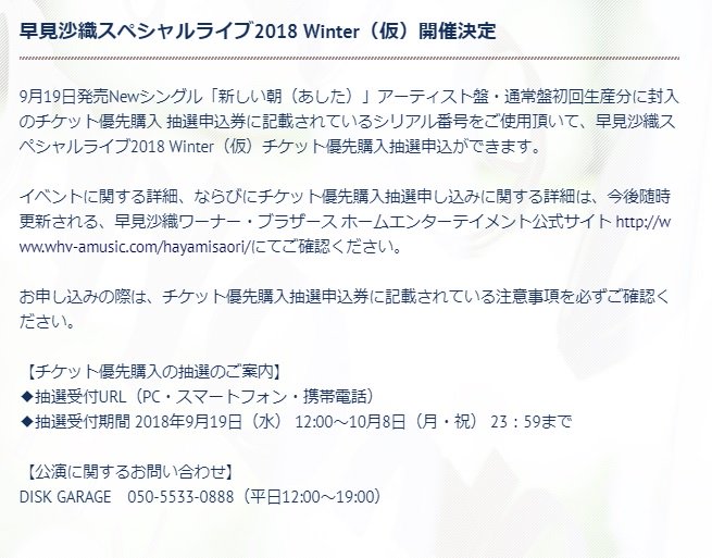 申込券はアーティスト盤、通常版ともに初回分のみ封入となります。(ス)
