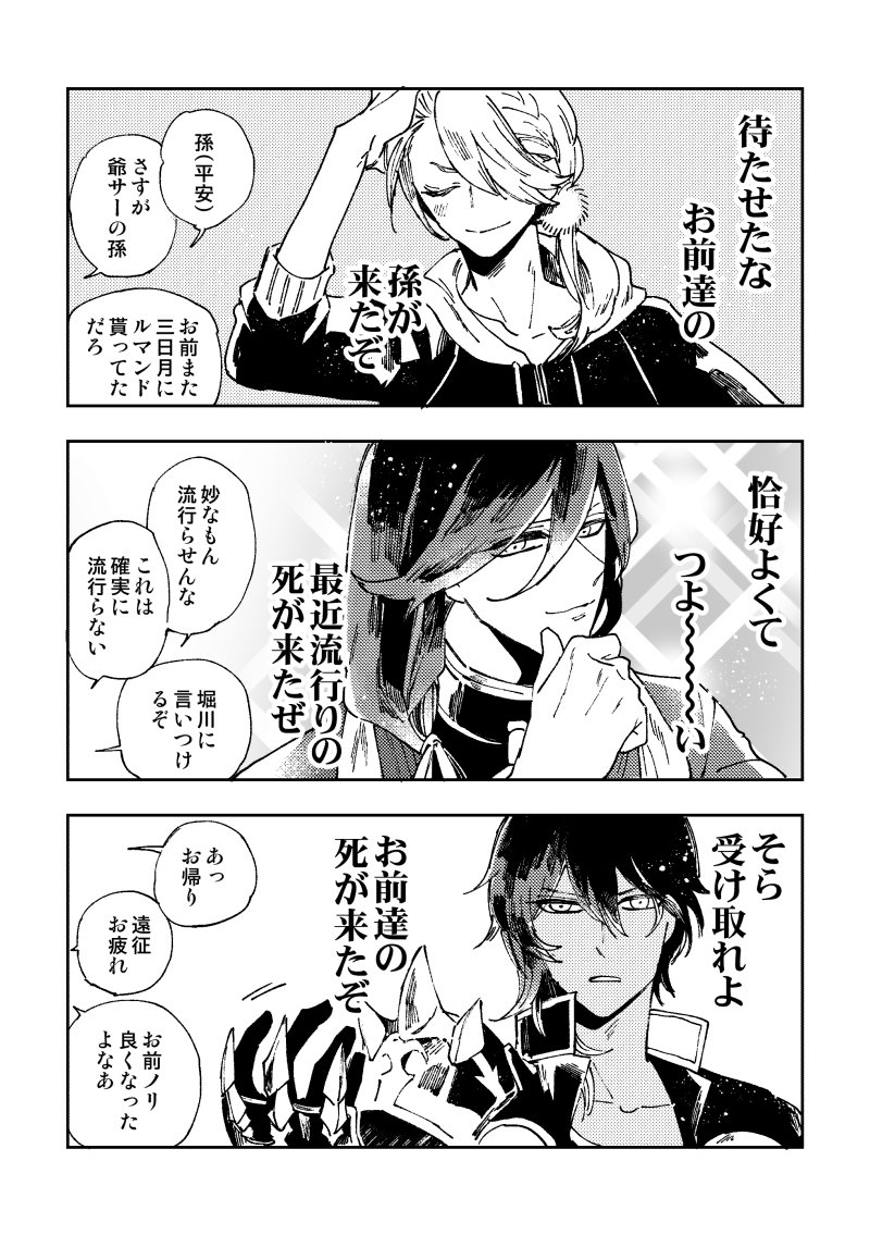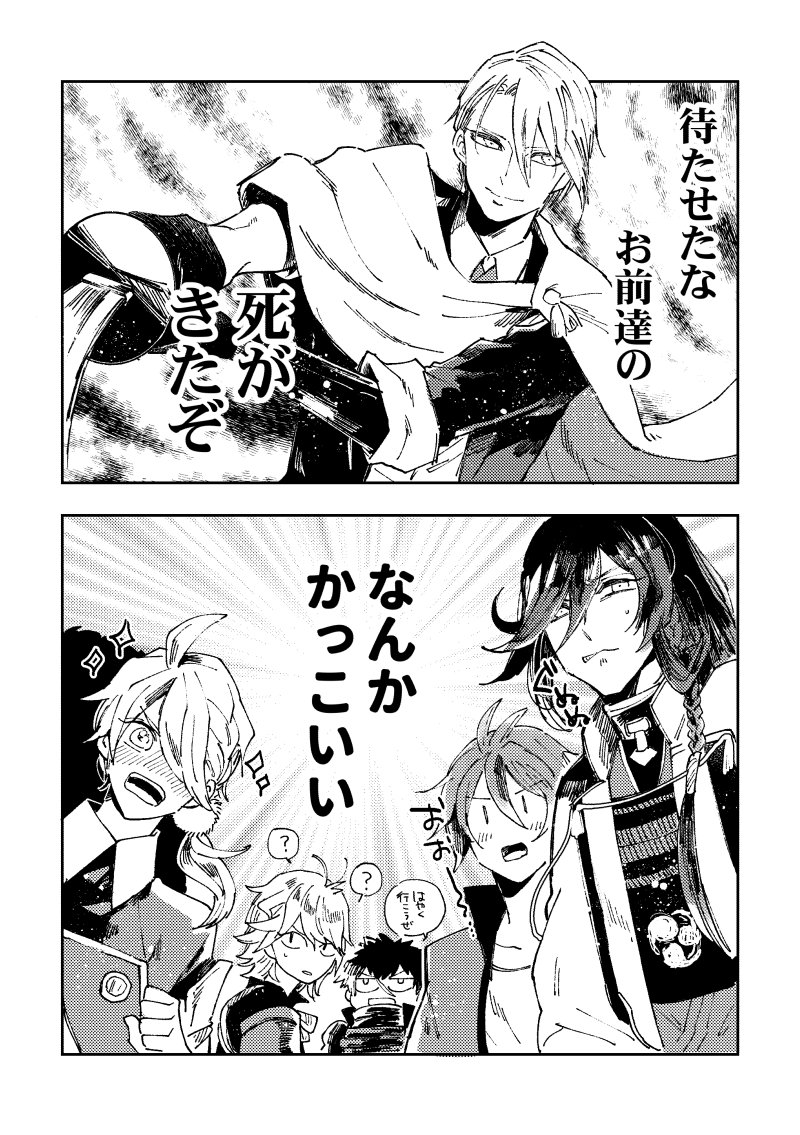 白ラン着てる南泉くん描こ~~ってペン取ったのになんかよくわからないことになった漫画。ノリの良い大倶利伽羅くんがいます。