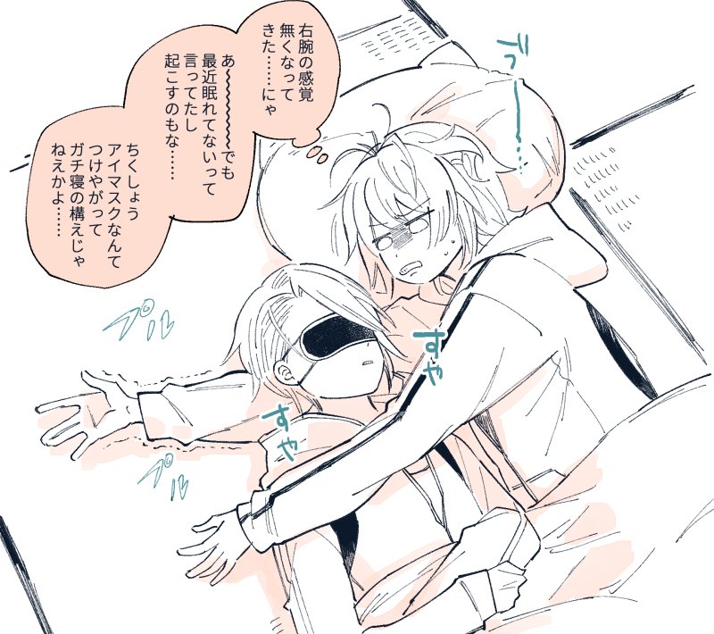 お昼寝してたらいつの間にか腕を枕にされていた南泉くん(にゃんちょぎ)