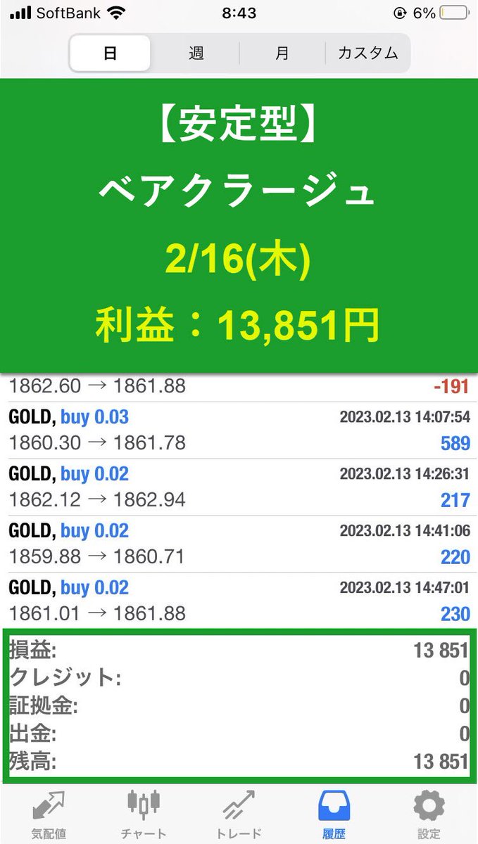13,851円(日利1.3%)