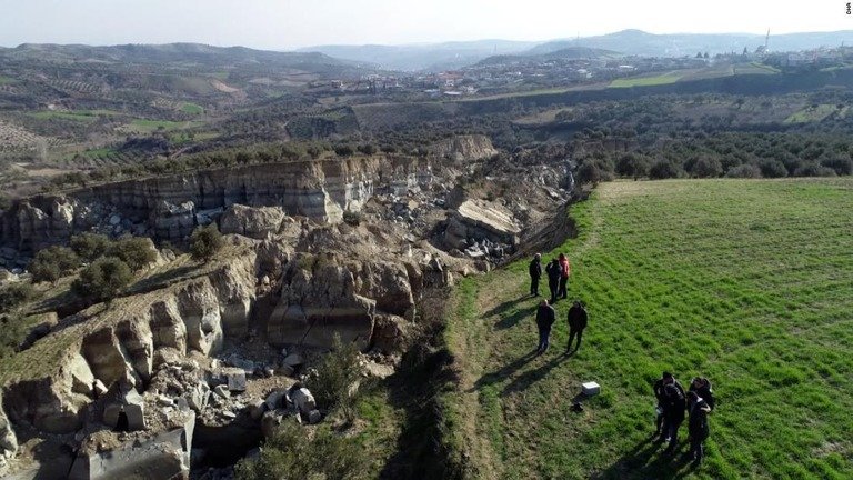 緑豊かなオリーブ園がトルコ大地震で真っ二つに割れ、幅約300メートルの谷が出現する事態となった