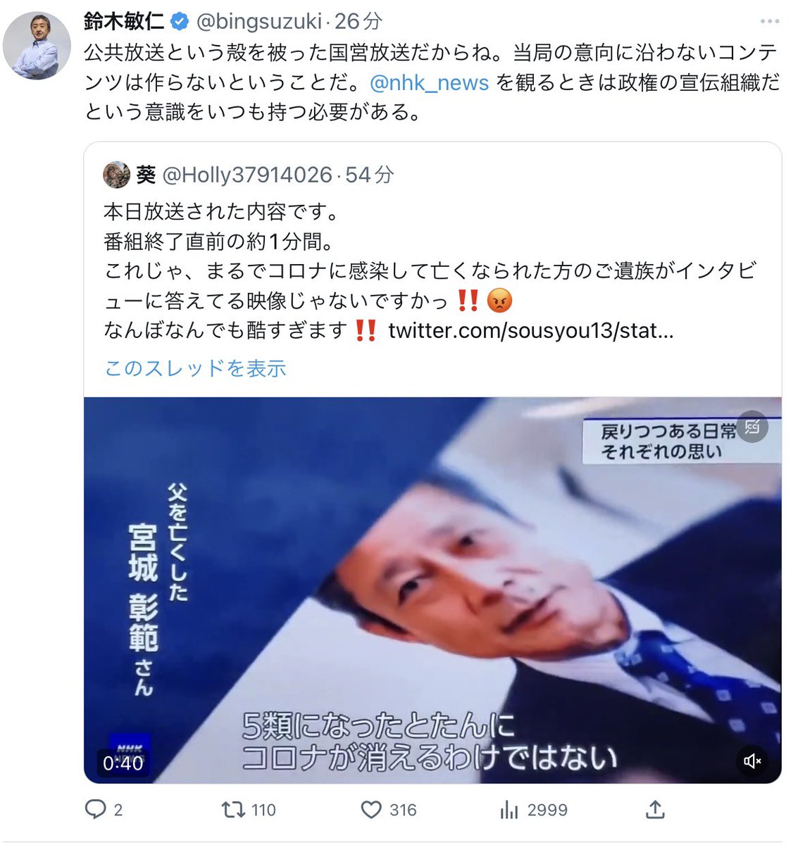 1分だけだけど、接種被害ご遺族がやっとNHKに取材され