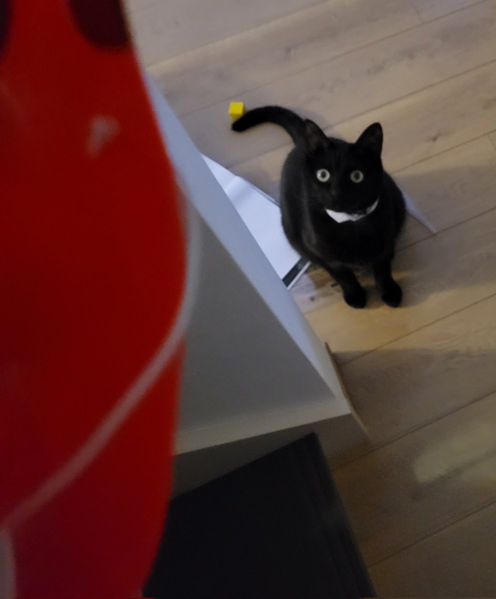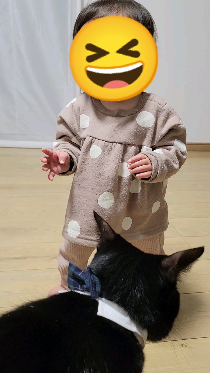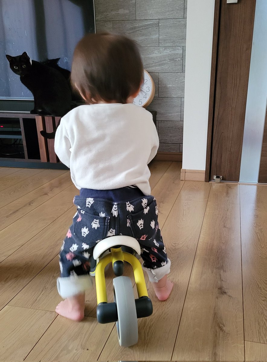 1歳児、朝早くからバッチリと目覚め、いつもは2歳児がダメ!と遊ばせてくれない玩具を堪能(2歳児、最初はいいけど徐々に自分も遊びたくて奪ってしまう)。色々ガサゴソ探索していたら黒猫が近距離からの監視に参戦。ペンペンされそうだが1歳児は玩具に夢中だった。黒猫は眠そうだった。