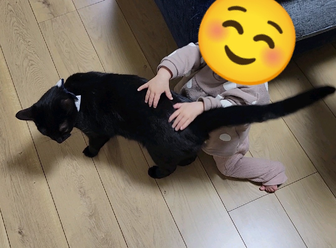 2歳児と1歳児がいない隙を狙ってワシャワシャされる黒猫。
