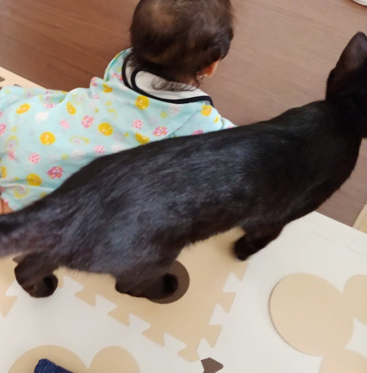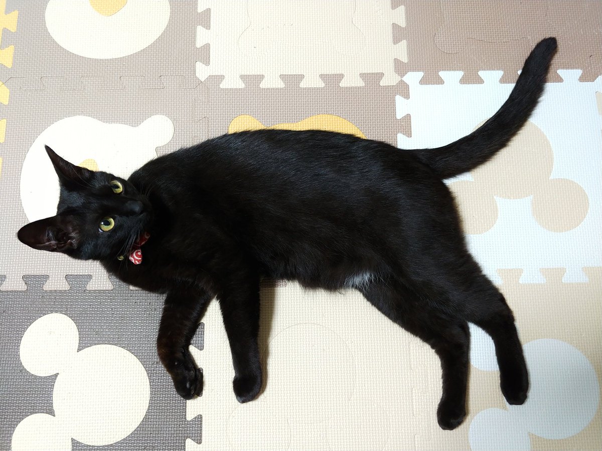 階段の下でそっとこちらをうかがう様子の黒猫がいたので、「ティチャラ!」(=黒猫の名前)と呼んだら、思ったよりしっかり返事をして駆け上がってきたという動画。